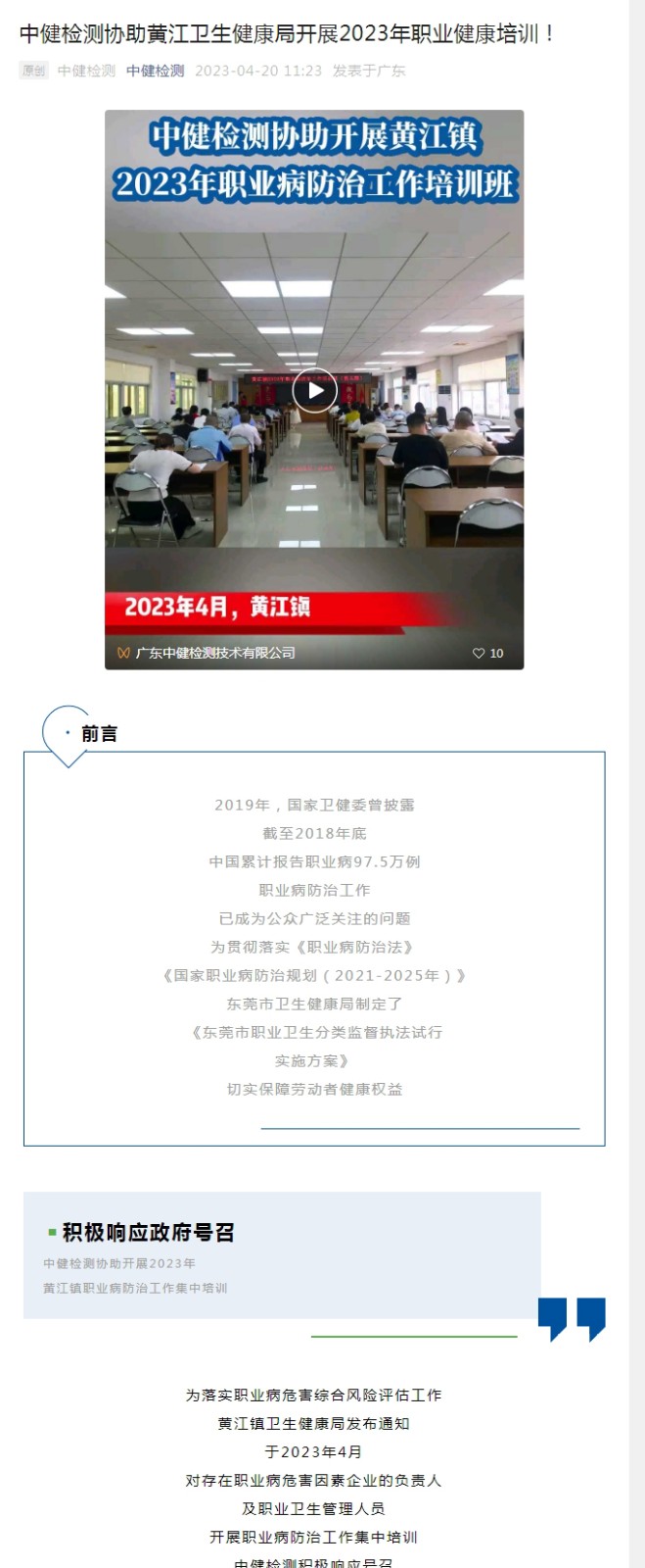 中健檢測協助黃江衛生健康局開(kāi)展2023年職業健康培訓!
